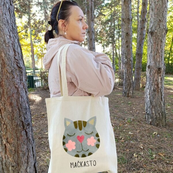 Pastelni tonovi sive, roze i maslinaste boje čine da se dizajn savršeno uklopi u svaki stajling, dok reč mačkasto ispisana ispod dodatno naglašava duh ovog cegera. To je reč koja ne postoji u rečniku, ali svako ko voli mačke zna tačno šta znači. Mačkasto je kada se sklupčate uz prozor. Kada zaboravite vreme uz knjigu. Kada pređete ulicu jer vas je pratila mačka. Kada u svakom danu pronađete sitnu radost.