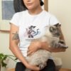 „Mačka sa stilom“ nije samo garderoba – to je umetnički izraz koji vam omogućava da nosite svoju ljubav prema mačkama sa ponosom. Savršeno se uklapa u svakodnevne ležerne kombinacije, ali može biti i upečatljiv detalj u elegantnijem outfitu. Bez obzira da li se spremate za šetnju gradom, kafu sa prijateljima ili opušteno veče, ova majica će privući pažnju i izazvati oduševljenje.