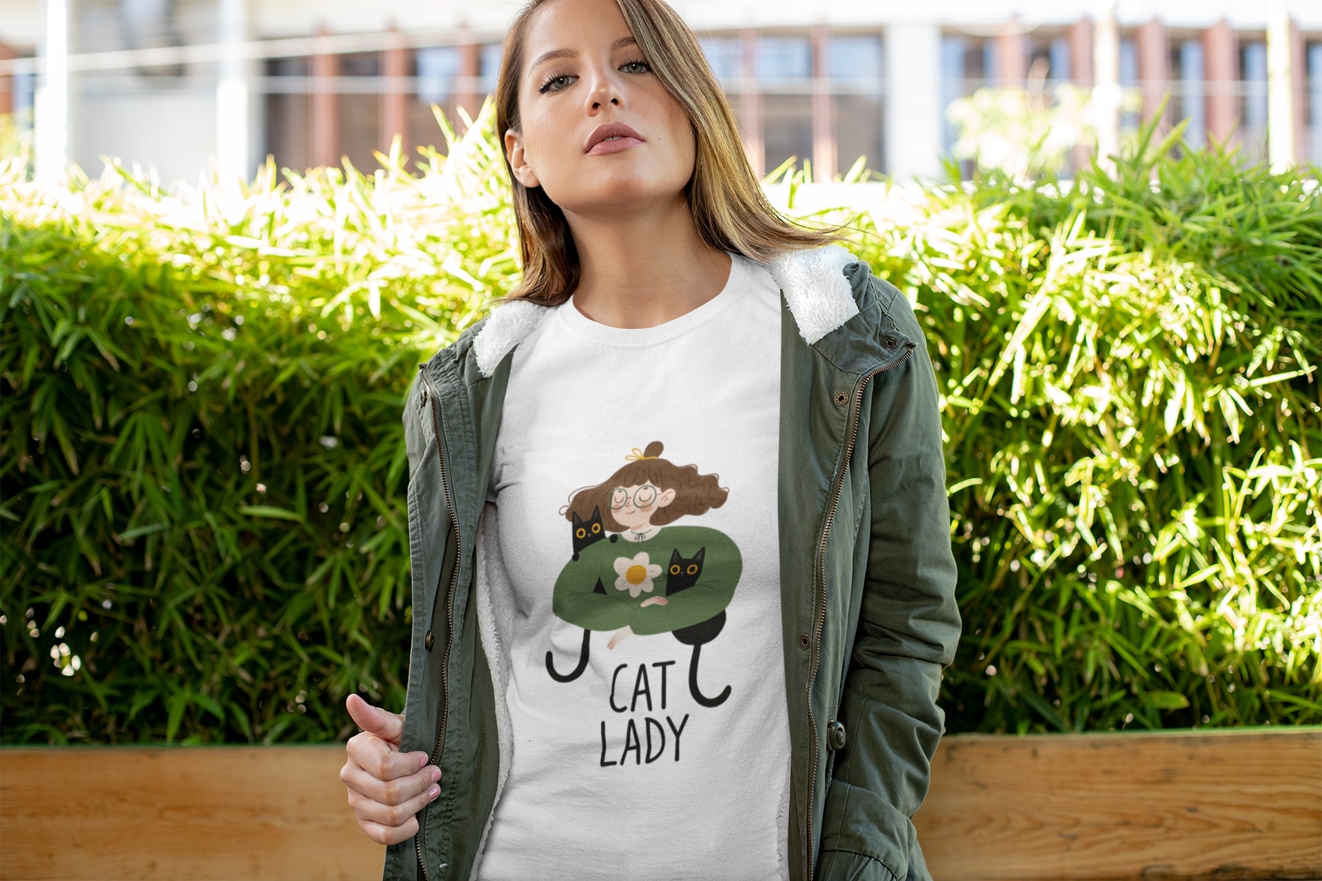 Na ilustraciji je prikazana nežna dama sa naočarima i osmehom u srcu, dok je grle dve crne mačke koje su se smestile tik uz nju – ušuškane, voljene, deo nje. Cvet na majici kao simbol nežnosti dodatno naglašava da prava ljubav ne mora da govori – ona prede. Ovaj Mačketina dizajn je originalan, topao i stvoren da izmami osmeh.