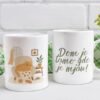 Na drugoj strani šolje ispisana je nežna, rukopisna poruka: “Dom je tamo gde je mjau!” – jednostavna, istinita i emotivna rečenica koja budi osmeh kod svakog ljubitelja mačaka. Font je topao, prijateljski i lako čitljiv, idealan za dekoraciju i svakodnevnu inspiraciju.