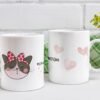 Na prednjoj strani šolje nalazi se ilustracija preslatke mačke zatvorenih očiju sa karakterističnom crvenom mašnom na tufne, u poznatom Mačketina stilu. Ovaj dizajn je jedinstven, nežan i pun karaktera – kao stvoren za sve koji žele da pokažu ljubav prema mačkama i svojim autentičnim stilom. Sa druge strane šolje nalaze se ručno oslikani baloni u obliku srca, uz reč koja kaže sve: Mjautentična.